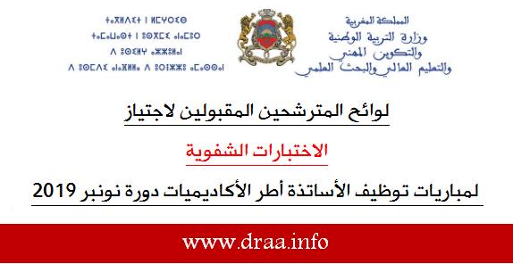 لائحة المرشحين المدعوين لاجتياز الاختبار الشفوي لمباريات توظيف الأساتذة من طرف الأكاديميات الجهوية للتربية والتكوين بجهات المملكة