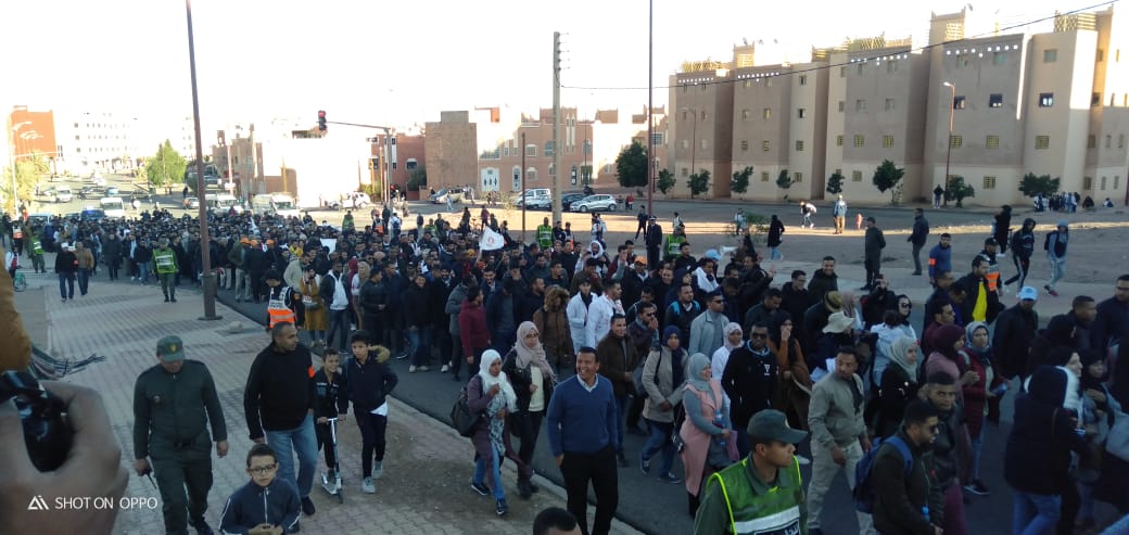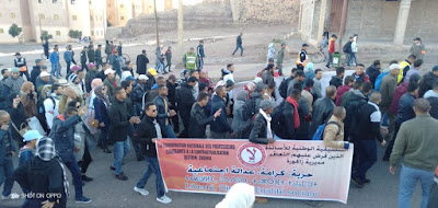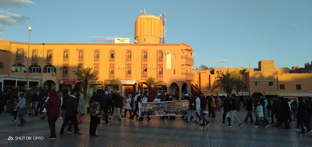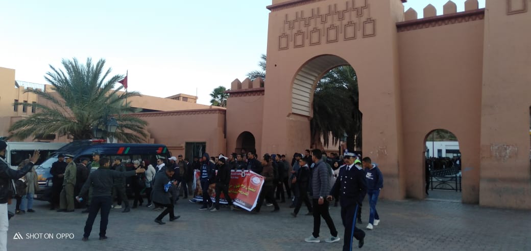انطلقت بعد زوال يومه الثلاثاء 3 دجنبر الجاري، بمدينة ورزازات، مسيرة حاشدة للأساتذة المتعاقدين، الذين تدفقوا من مختلف المديريات اقاليم جهة درعة تافيلالت، من شارع سيدي داود ، في اتجاه ساحة الموحدين عبر شارع المغرب العربي .