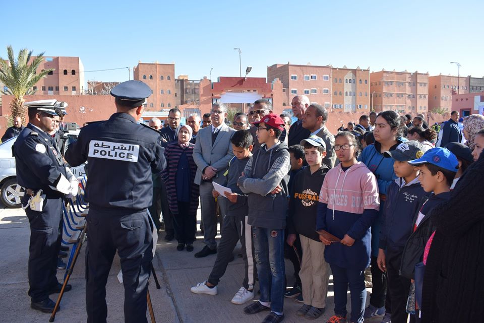 وقد أشرف الكاتب العام لعمالة إقليم ورزازات والوفد المرافق له، على مراسيم الاحتفال بهذا اليوم الوطني الذي شهد تقديم دروس توعوية وتنظيم ورشات تحسيسية لفائدة التلاميذ حول أهمية السلامة الطرقية تهدف الى حمايتهم من أخطار الطريق، إضافة إلى تنظيم حلقات نقاش مع التلاميذ تمحورت حول الوقاية من حوادث السير مع توزيع مطويات تشمل نصائح وإرشادات .