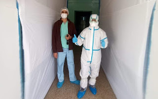 بمجرد دخولنا إلى المستشفى وجدنا كافة سبل التعقيم والتطهير، فالجميع يجري مثل خلية النحل لا يتوقف أحد منهم، جميعهم يبذلون قصارى جهدهم لإنقاذ المرضى، وبالتوازي مع ذلك فالجميع يتبع كافة أساليب التعقيم والتطهير.