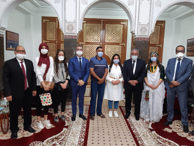 بمقر ولاية جهة درعة تافيلالت بمدينة الرشيدية أقام صباح اليوم الثلاثاء 30 يوينو الجاري والي جهة درعة تافيلالت عامل إقليم الرشيدية حفل إستقبال على شرف التلميذات الفائزات في المسابقة الإبداعية الوطنية الخاصة بمساهمة المتعلمات والمتعلمين في بلورة النموذج التنموي الجديد في موضوع “مغرب الغد” الممثلات لجهة درعة تافيلالت، وكذا التلميذة إنصاف أجعنيط الفائزة برحلة علمية وتكوينية إلى وكالة الفضاء الأمريكية – ناسا.