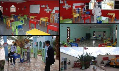 وأكد المدير التربوي أيضا انه انطلاقا من هذه الأرضية قمنا بمجودات داخل المؤسسة على صعيد الأقسام والساحة وكل المرافق بالمؤسسة ومن بين التدابير الالتزام بالتباعد داخل الفصول بين التلاميذ وتم تخصيص قاعة الأنشطة الكبرى للاجتماعات بين اطر الإدارة وهيئة التدريس، وكذا بين التلاميذ وهيئة التدريس لأجل التعارف عن قرب، ونظرا لإقبال الإباء على المؤسسة لاختيار نمط التدريس لأبنائهم تم توفير الاستمارات داخل المؤسسة أو عن طريق بوابة مسار أو عن طريق البريد الالكتروني.