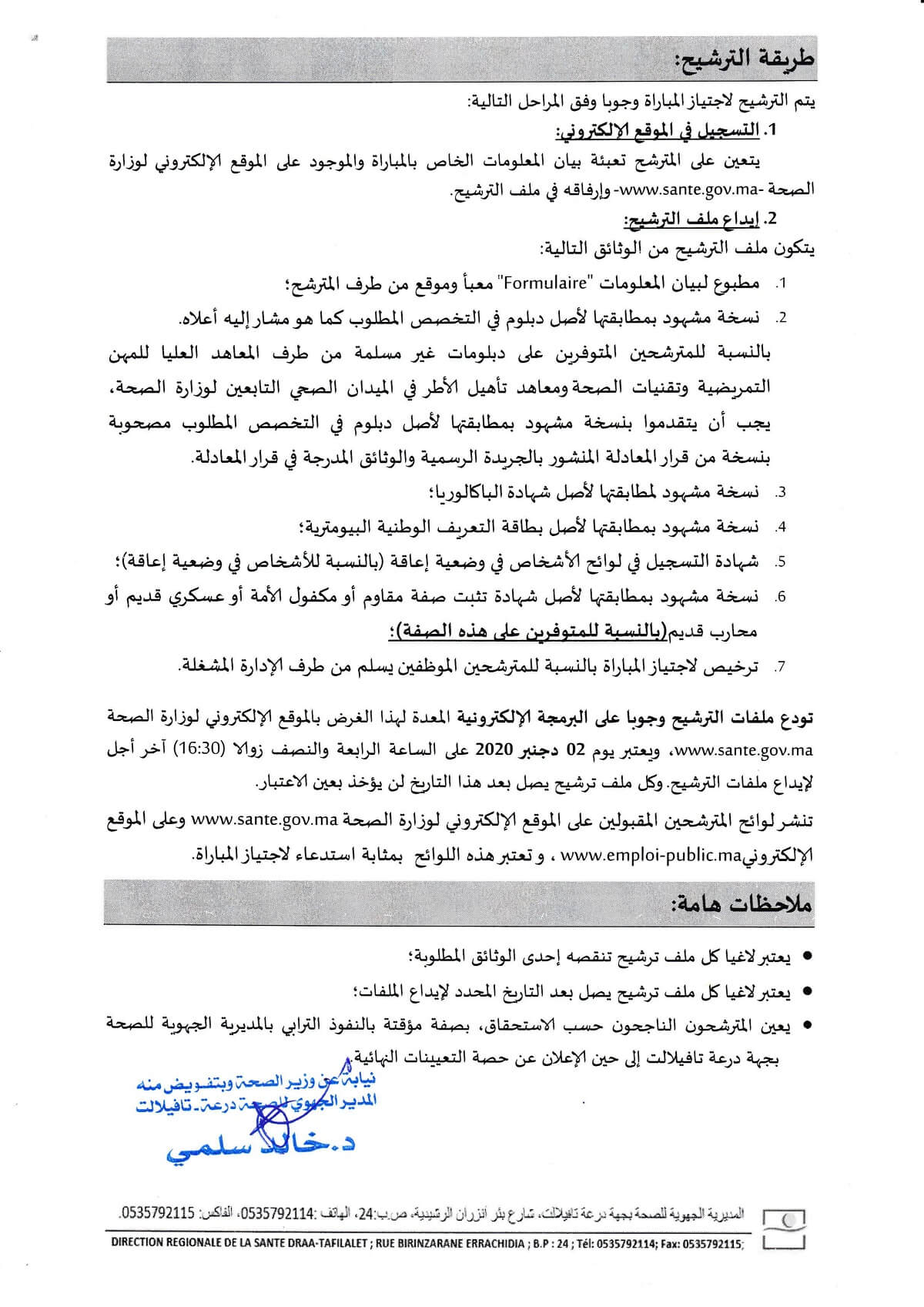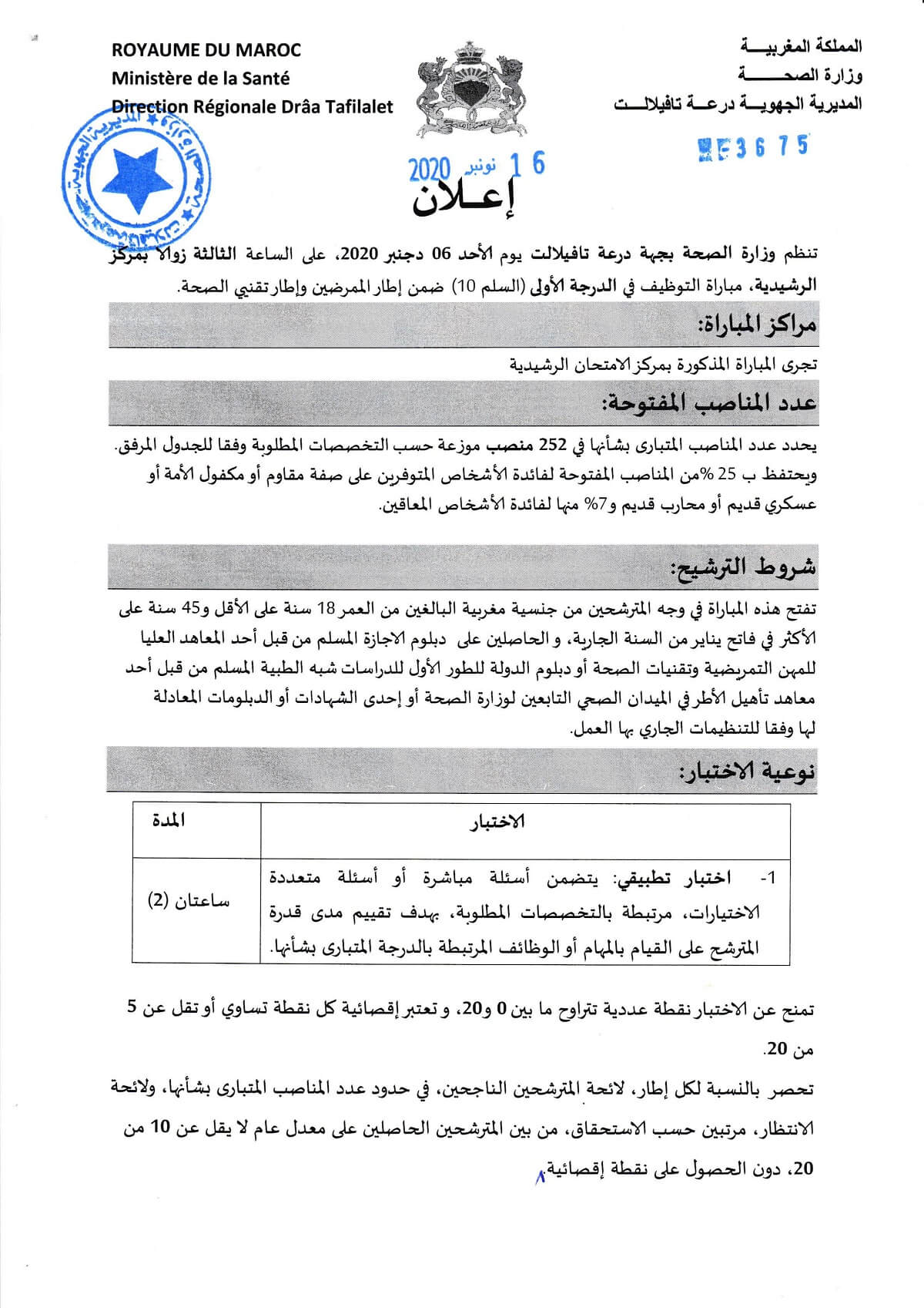 المديرية الجهوية للصحة درعة تافيلالت تعلن عن مباراة لتوظيف 252 منصب برسم سنة 2020