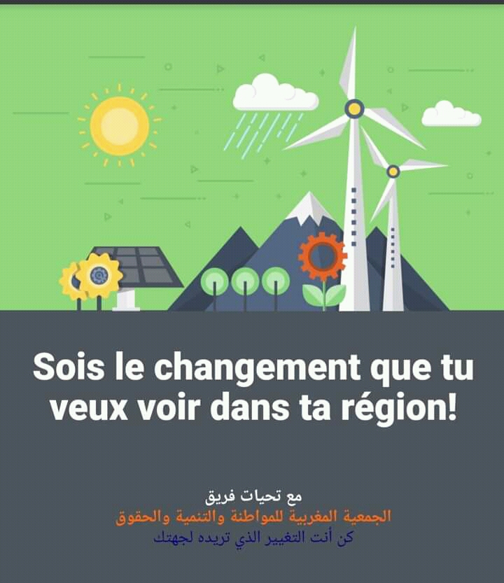 “كل أنت التغييرالذي تريده لجهتك ” شعار اعتمدته الجمعية للترافع على ملفات حقوق الانسان وزرع روح المواطنة والاهتمام بقضايا الشباب بجهة درعة تافيلالت وقضايا الهجرة والمهاجرين .