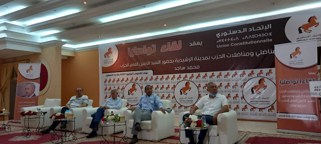 نظم حزب الاتحاد الدستوري ، بقاعة فلسطين بالرشيدية ، صباح أمس الخميس 01 يوليوز 2021، لقاء تواصليا مع مناضليه وأطره في جهة درعة تافيلالت.