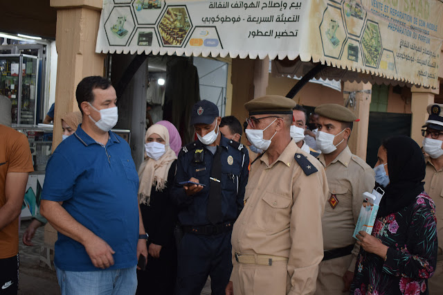 يشرف السيد قائد المقاطعة الحضرية الخامسة بالرشيدية ، على تنظيم حملات تحسيسية مكثفة في العديد من الأماكن والفضاءات العمومية ،من أجل حث المواطنين على الالتزام التام بالإجراءات الوقائية ضد وباء كورونا (كوفيد-19).